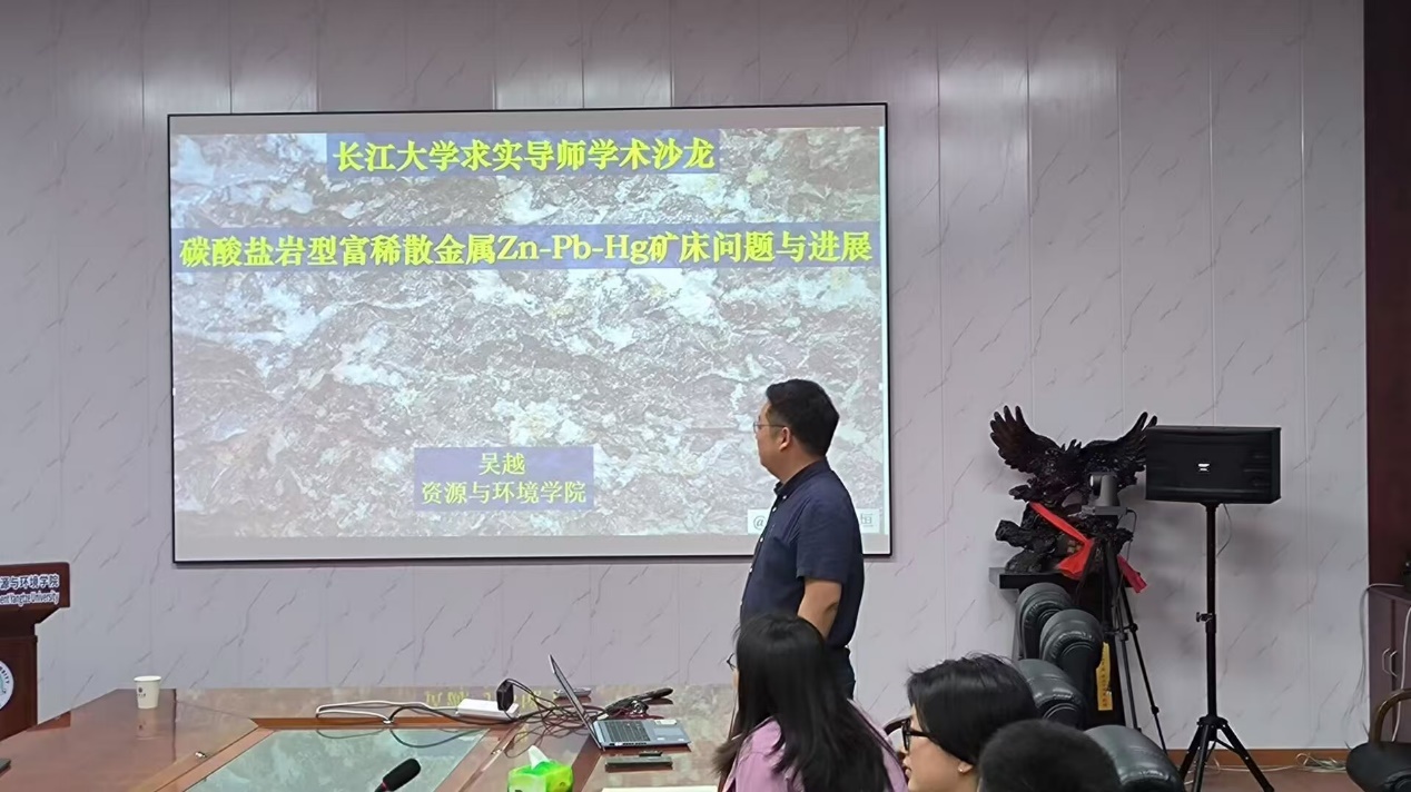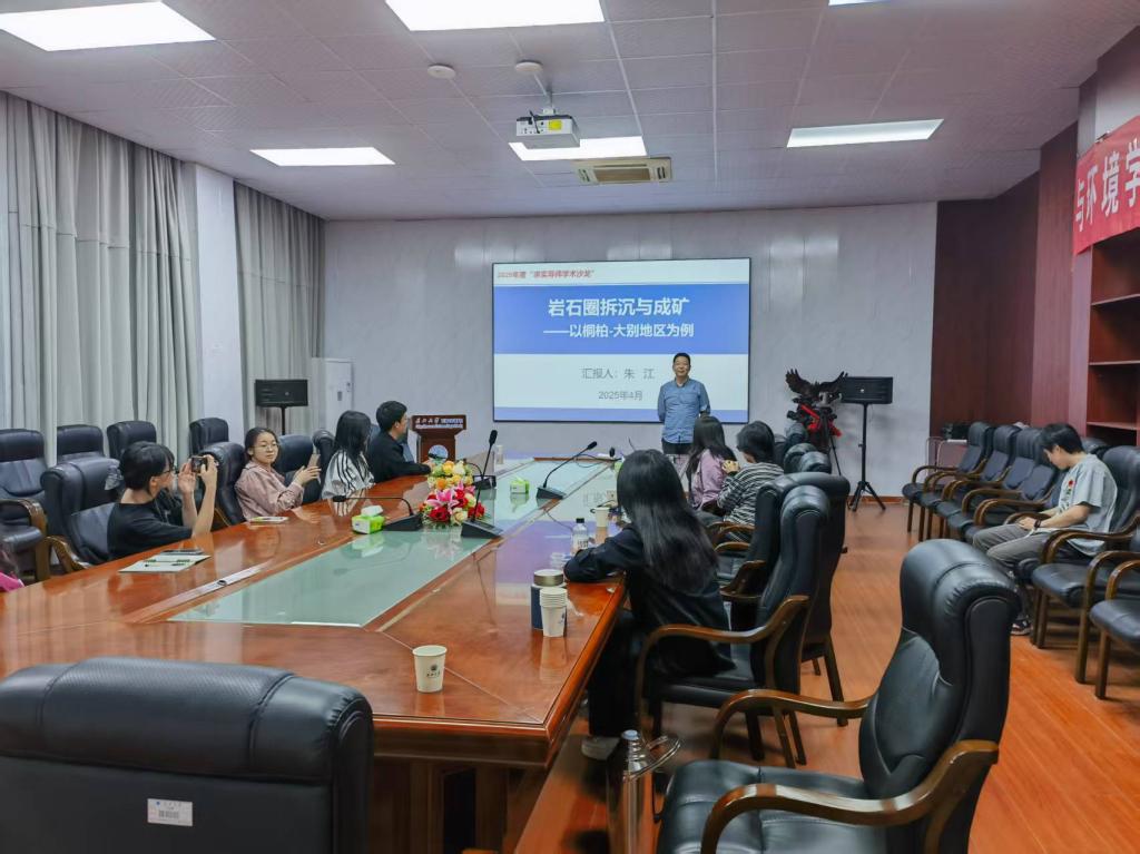 (通讯员 周繁艳)2025年4月9日19:30,古天乐代言太阳集团网址“求实导师学术沙龙”系列讲座在石油科技大楼D101会议室如期开展。本次讲座由吴越教授、段登飞副教授、朱江副教授三位优秀教师担任主讲人,相关固体矿床领域研究团队成员及多位在校硕士研究生参与了此次学术交流会。