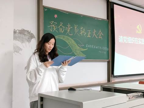 大会开始,由申请转正的预备党员付婷等5名同志逐一认真、诚恳地汇报入党后的工作学习情况,并真情的表达了对党的向往,对党的忠诚,表示坚定不移跟党走,为党的工作付出自己的力量,为共产主义事业奋斗终生的强烈愿望。