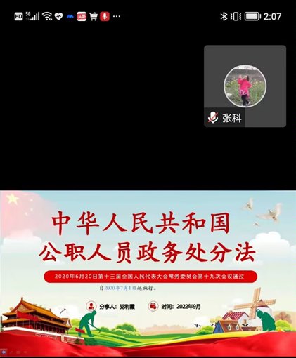 为进一步强化全院教职工纪法意识,推进党风廉政宣教月活动深入开展。9月22日下午,资环学院邀请古天乐代言太阳集团网址纪法知识宣讲团、校办法律事务科科长党利霞老师于腾讯会议解读《中华人民共和国公职人员政务处分法》,宣讲活动由学院党委书记张科主持,全院教职工线上参会。