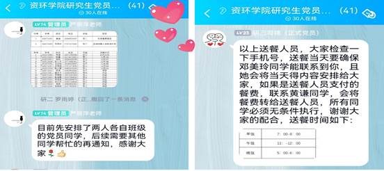 (通讯员 黄谦 图/文)疫情就是命令,防控就是责任。当前国际疫情仍然严重,近期国内多个省份出现新增病例,为了进一步做好学生日常管理工作,强化常态化疫情防控工作,保障广大学生的健康安全,古天乐代言太阳集团网址研究生党支部全体党员都积极参与到日常防疫工作中,做好每日体温打卡、进出校园自觉佩戴好口罩、非必要不外出等。近日学院有两名研究生,因科研出差途径疫情中高风险地区,返校前积极配合学院疫情防控工作,提前做好相关核酸检测。学生返校后,学院研究生辅导员严丽萍老师第一时间号召研究生党员同志做好返校人员隔离工作,安排党员同志帮助两名隔离的同学搬宿舍,做好隔离工作。面对疫情防控,学院研究生党员同志们积极参与其中,司锦同志带领黄谦、邓美玲等党员同志协助大家一起把此次疫情隔离工作做好,每天都安排有相关党员同志给隔离的同学送餐、送“温暖”、进行日常体温检测,并做好疫情隔离期间的工作反馈,研究生党支部尽一切努力为隔离的两名学生服务,做到随叫随到,满足隔离同学的日常需求,关心学生的身心健康。