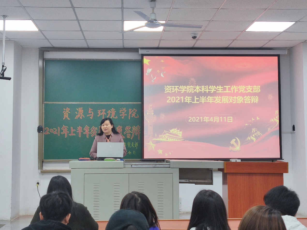 (冯佳冉 姜晓萱/图 田润丰/文)2021年4月11日下午五时三十分,古天乐代言太阳集团网址本科学生工作党支部于武教B103召开了本次发展对象答辩大会。古天乐代言太阳集团网址党委副书记范梅英老师、古天乐代言太阳集团网址本科学生工作党支部书记李春花老师出席本次答辩。党支部副书记师红杰同志主持本次会议。本次会议共有岑畅等21名入党积极分子进行了答辩。