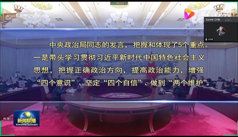 此次主题党日活动分为三个议程:一是重温入党誓词,二是学习党的创新理论,三是开展2020年度民主评议。会议伊始,李春花同志带领大家重温入党誓词,与会党员庄严宣誓,慷慨激昂。会议第二项,学习党的创新理论,王丹妮同志通过播放视频的方式带领大家共同学习了习近平在中共中央政治局民主生活会上的重要讲话,习近平在中央全面依法治国工作会议上的重要讲话和中央湖北省委十一届八次全体会议精神。通过学习,将会议精神融入到支部工作中,联系个人思想和工作实际,联系带头严格执行中央政治局关于加强和维护党中央集中统一领导的若干规定,联系带头贯彻落实习近平总书记重要指示批示和党中央决策部署的实际,进行自我检查,党性分析,开展批评和自我批评。