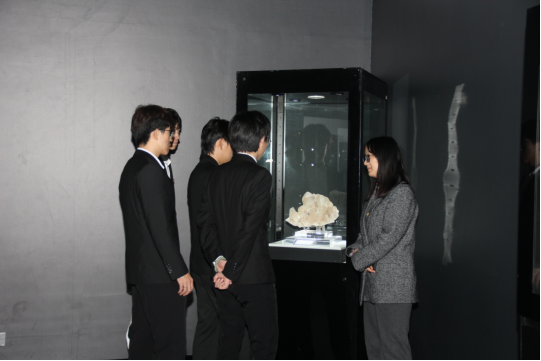 在矿物岩石展厅,学生党员们立足专业视角,从地质演化与资源分布层面深入理解了“三光荣”的地质人精神。通过观察镇馆之宝黑龙江东北龙骨架、璀璨矿物晶体等3.5万余件标本,同学们沉浸式感受了地球亿万年的演化史诗,更加坚定了将“绿水青山就是金山银山”理念融入专业实践,以扎实的学识服务国家能源环境事业的决心。