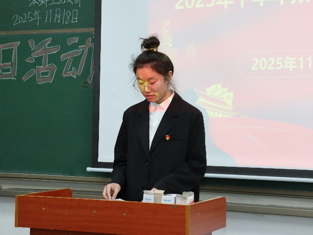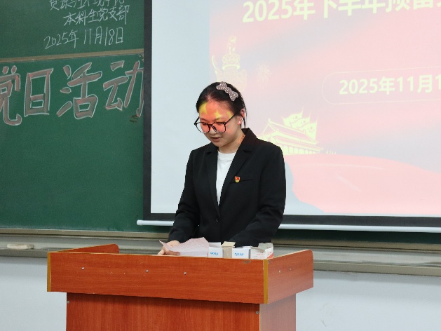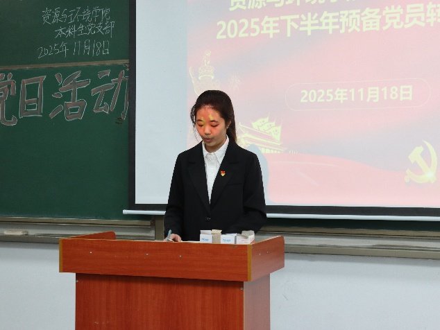 (通讯员孙文静) 2025年11月18日下午6点, 学院本科生党支部于武教A106举行2025年下半年预备党员接收暨转正大会,学工办主任李春花老师、学生党员、发展对象参会。 大会第一项,接收预备党员。3名发展对象依次上台向党组织汇报入党动机、成长收获、未来发展及需要向党组织说明的问题。发展对象入党介绍人对发展对象的情况加以说明,并对其能否入党表明意见。经支部讨论和无记名投票表决,同意接收李燕丽等3名发展对象为中共预备党员。 大会第二项,预备党员转正。申请转正的4位预备党员依次上台,向党组织汇报了预备考察期学习、工作、针对自身不足改进情况,深刻阐述了对党的认识、入党动机以及个人成长与进步。经支部大会讨论和无记名投票表决,同意答淑涵等4名同志按期转为中共正式党员。 此次支部大会的召开,为党组织注入了新鲜血液,壮大了党员队伍。李春花老师在总结讲话中强调,全体党员要时刻牢记入党初心与动机,将不足与批评化为动力,不断加强理论学习,在学习、工作和生活中发挥党员的先锋模范作用,为学院的发展和党的事业贡献自己的力量。 审核(李春花)