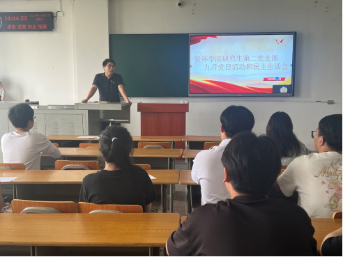 (通讯员 李宁昱)2025年9月26日,资环学院研究生第二党支部在武教B304教室成功举办“深化党史感悟、凝聚奋进力量”主题党日活动。本次活动由肖连同志主持,黄鹏老师及支部全体党员共同参与。