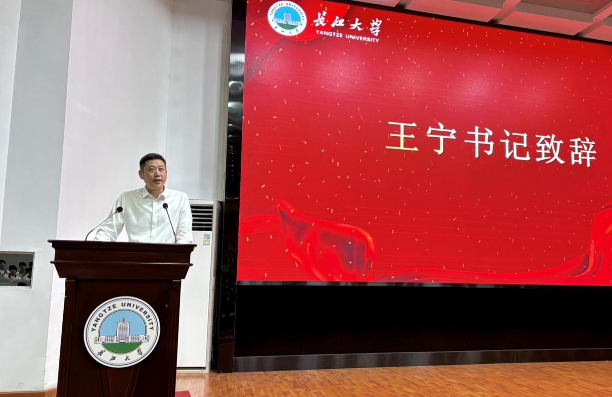 大会在庄严的国歌声中拉开帷幕。学院党委书记王宁回顾了学院发展历程,详细介绍了学院雄厚的师资力量、强劲的科研实力与丰硕的育人成果。他从“资环人”的使命担当出发,阐述了“专业素养与生态责任并重”的育人理念,紧密结合国家绿色发展大局,勉励同学们扎实掌握专业知识,提升实际问题解决能力,树立“守护绿水青山”的责任意识,实现个人成长与时代发展的同频共振。