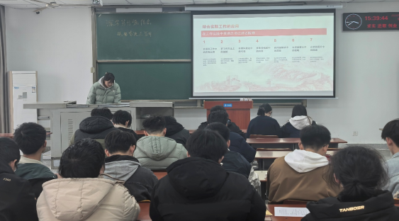 随后,各团支部围绕2026年全国两会精神及“十五五”规划开展专题学习研讨。通过PPT讲解、交流发言等形式,同学们系统学习国家在新质生产力、现代化基础设施、民生保障等重点领域的多项重大工程项目,以及经济增长、就业、绿色转型等主要预期目标。大家结合专业特点谈认识、谈体会,一致表示要把两会精神转化为学习动力与科研方向,主动对接国家发展需求。
