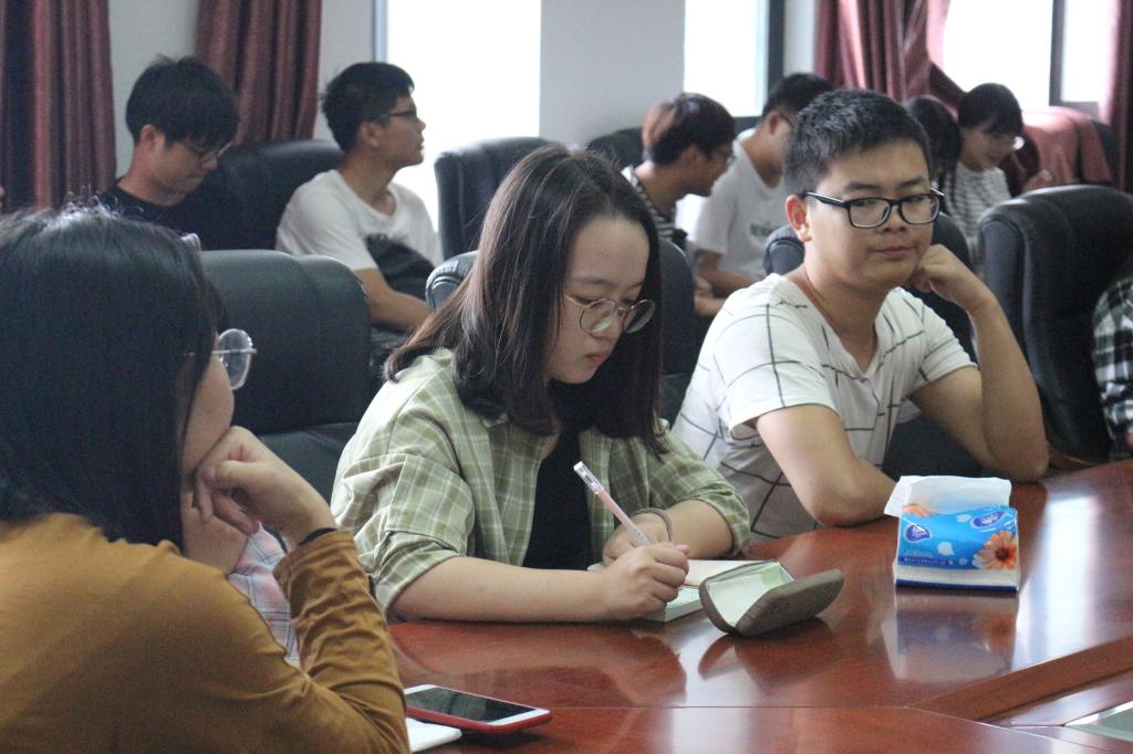 会议接近尾声,进入问答环节。肖耀同学详细解答了同学们提出的关于薪酬待遇、工作环境、用人标准等方面的问题,消除多余顾虑,使他们对自己的未来充满信心,几十张求职申请表转眼发放完毕。