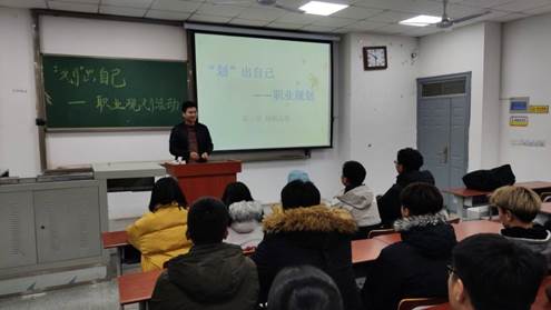 讲座开始前主讲人易传俊从“如何做一名合格的大学生?”开始讲起,我们作为一名大学生,首先应有一个清醒的自我认识,从思考中确立自我,从学习中寻求真理,从独立中体验自主,从表达中锻炼口才,从交友中品味成熟,从实践中赢得价值。一一讲述了如何做一名合格的大学生?同时又告诉在场的新同学,在了解了怎样做一名合格的大学生之后,更重要的就是如何规划自己三年的大学生活,大一时,你要博业,就是说你要看大量的书,从中发现你喜欢的知识领域;大二时,你要通业,把你所学的专业知识学好,为以后就业打下坚实的基础。大三时,你要择业,就是在实习时要加强技能的学习,练好本领,同时还要学会自我推荐和找机会展示自己的才能,从而实现就业。最后,易传俊给大家总结职业生涯规划:树立职业精神;建立目标意识、规划意识;学会学习、做事、做人。