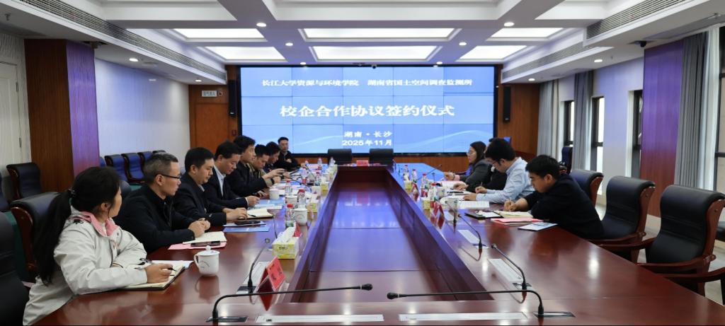 (通讯员 黄鹏)11月4日下午,学院与湖南省国土空间调查监测所校企合作协议签约仪式在有色地勘大厦26楼会议室隆重举行。此次签约标志着双方在资源环境领域的产教融合、协同创新迈出了坚实一步。