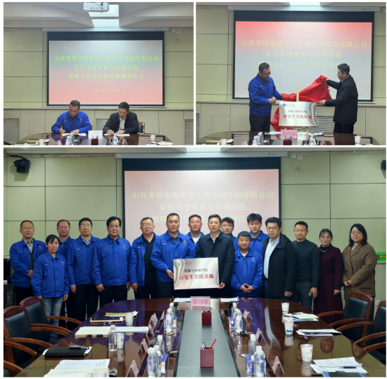 (通讯员 贾晓岑)2025年12月9日上午,学院与山西省煤炭地质水文勘查研究院有限公司战略合作协议签约仪式暨揭牌仪式在水勘院二楼会议室隆重举行。此次合作标志着双方在新能源开发利用、水文地质、生态环境治理等领域的产学研融合迈入新阶段。