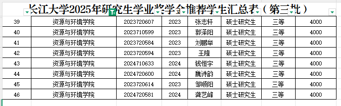 根据省财政厅、省教育厅等部门《湖北省学生资助资金管理办法》(鄂财教发〔2023〕58号)和《古天乐代言太阳集团网址学生资助资金管理办法(修订)》(长大校发〔2025〕112号)以及《古天乐代言太阳集团网址研究生学业奖学金评审工作实施细则》等有关文件规定,结合学校研究生经费有部分结余,经前期研究生本人申请、导师推荐、学院评审,特将2025年古天乐代言太阳集团网址研究生学业奖学金增补名单公示如下: